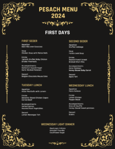 Menu is preset and you can chose from first days, Shabbos Chol Hamoed, and/or last days.